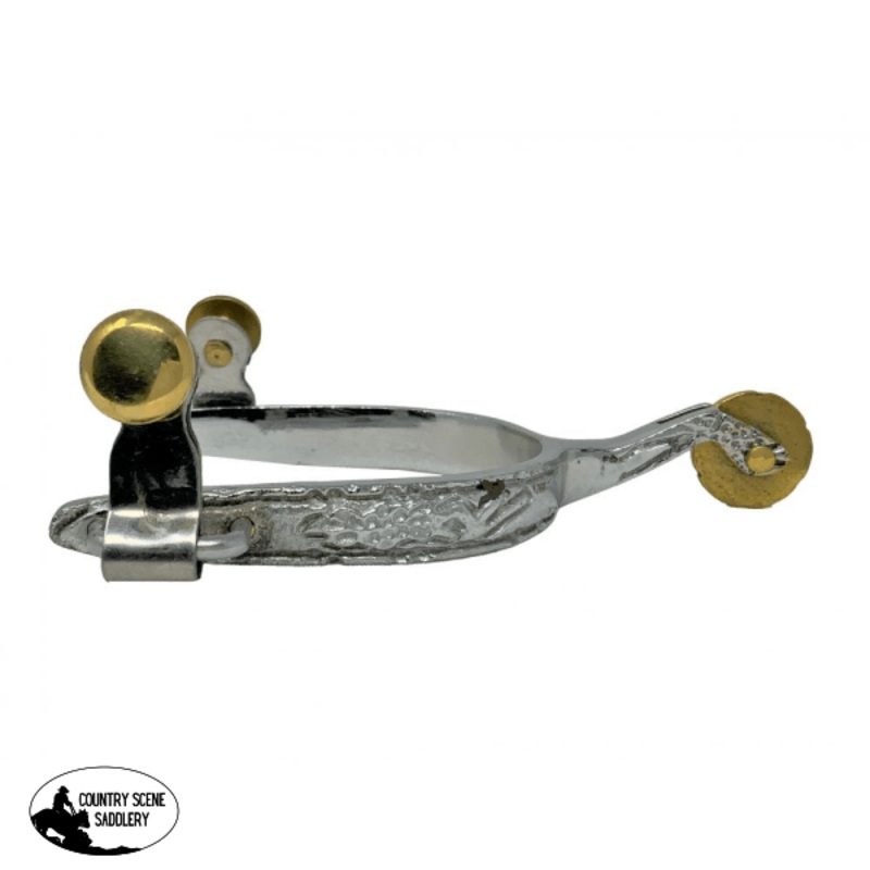 ECWS-068Showman Western Chrome Plated Kids size spurs, features brass plated buttons and rowels.Shank: 1 1/2" Band Width: 1/2" Boot Width: 2 1/2"Pre order USA can add to next shipment (subject to change)