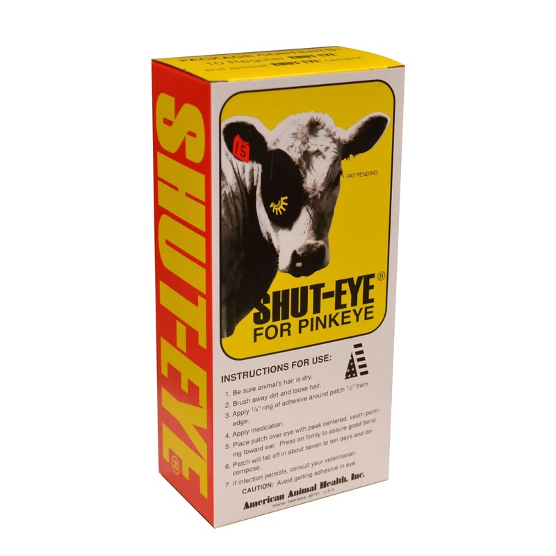 Shut-Eye for Pinkeye Cattle Disease is a protective eye patch for pinkeye treatment and is available in both cow (regular) and calf size.