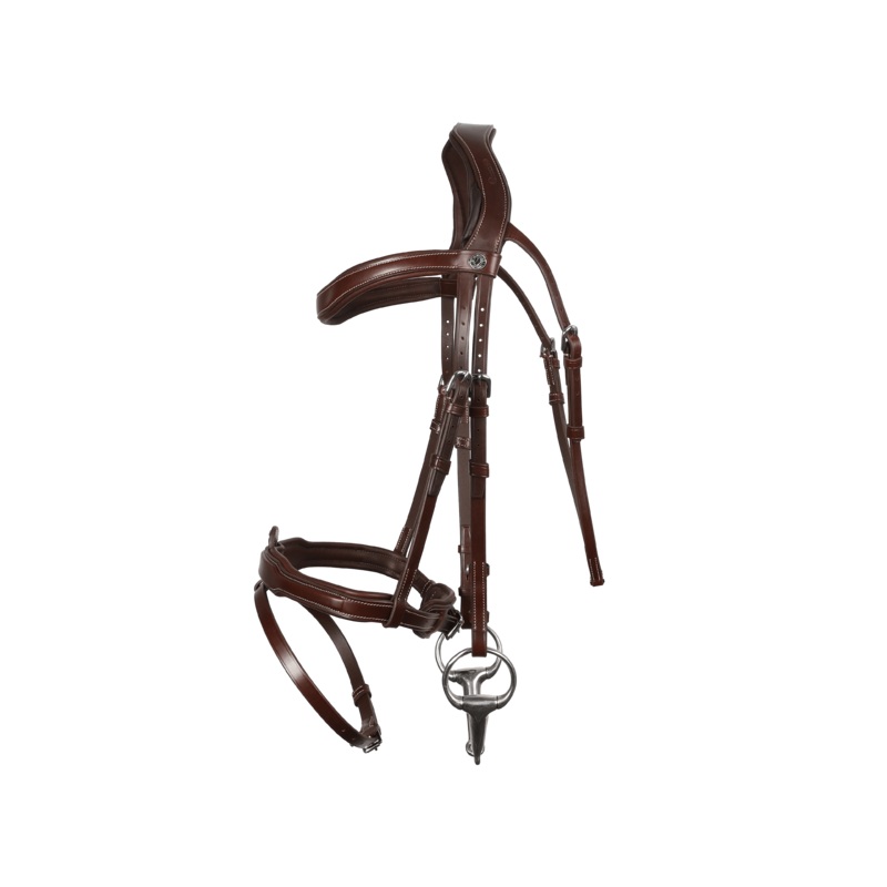 Anatomic flash noseband bridlein high-quality Italian leatherProducts benefits: Padded, soft calf-lined browband, crown part, and noseband1 Anatomic headpiece, shaped to release the pole and avoid pressure on 1st cervical vertebras2 Soft comfort pads behin