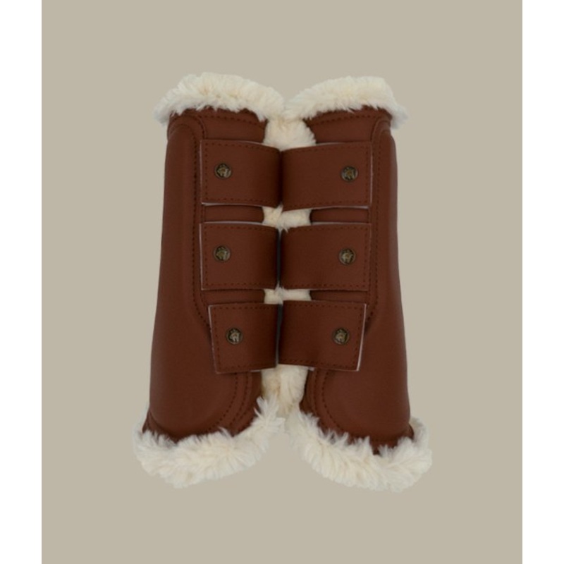 16C Leatherette brushing boots in cognac with ivory faux fur lining.