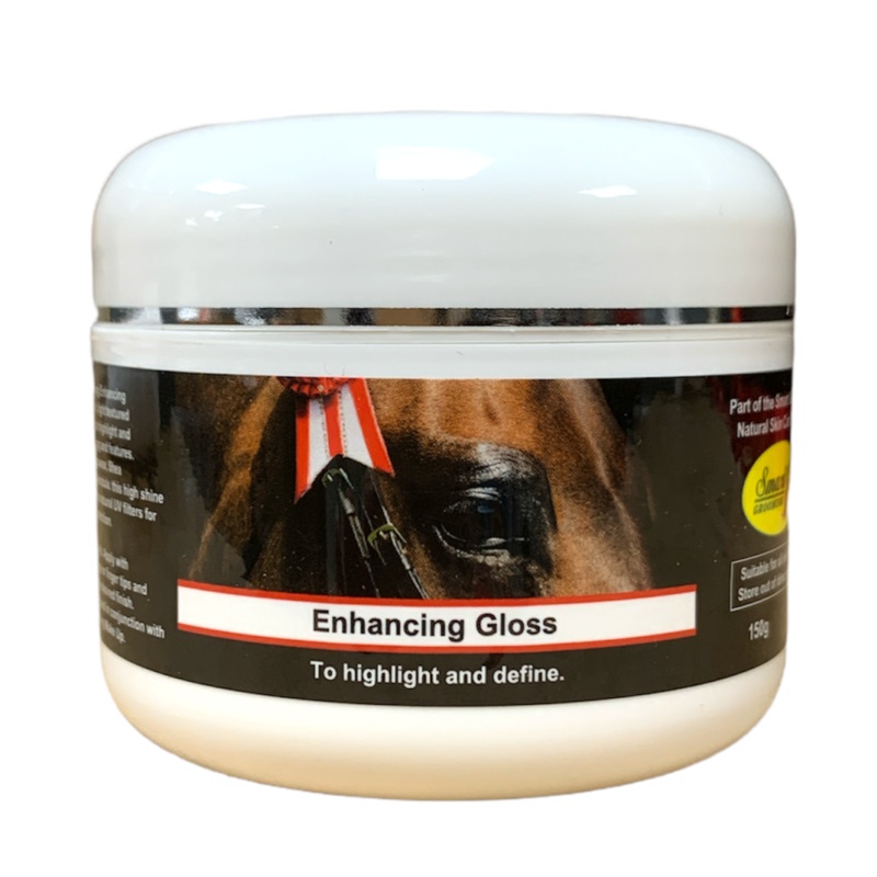 Smart Grooming Enhancing Gloss is a rich but light textured gloss that highlights and enhances natural colouring around the eyes, muzzle and other areas of the horse or pony.