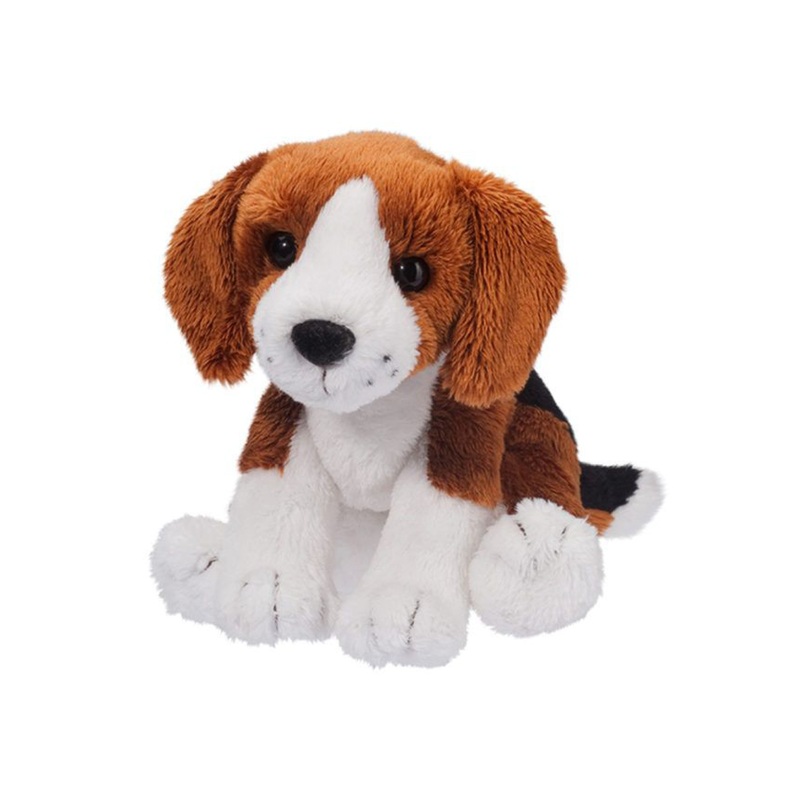 Sniff, our adorable mini Beagle plush will easily fit into a teacup or pocket! Pick up this little floppy eared pup and find that he sits perfectly in the palm of your hand. Snuggly soft plush materials and silky polyester fill make him even more cuddly and appealing. Sniff boasts a handsome tri-colored coat with realistic patterning. His dark eyes and black flocked nose are accompanied by an eye catching white blaze up his forehead. This endearing hound dog puppy will charm fans of the breed and dog lovers of all ages. Bring home Sniff the Beagle stuffed animal and let him work his magic!