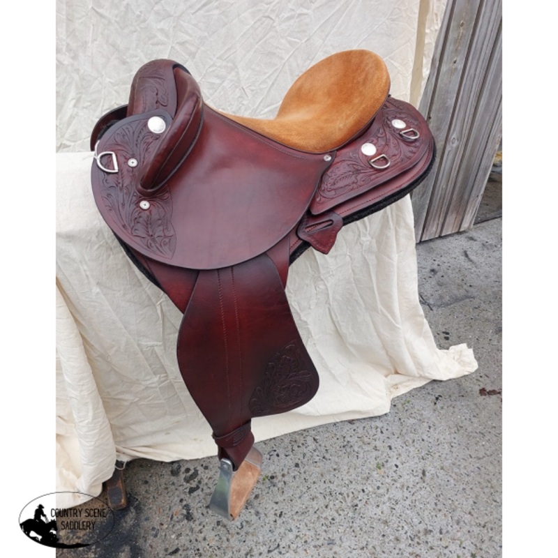 16″(13″ inside seat) competition halfbreed ,tan, hand carved, felt lining, semi QH tree ,silver fittings,$3500.00