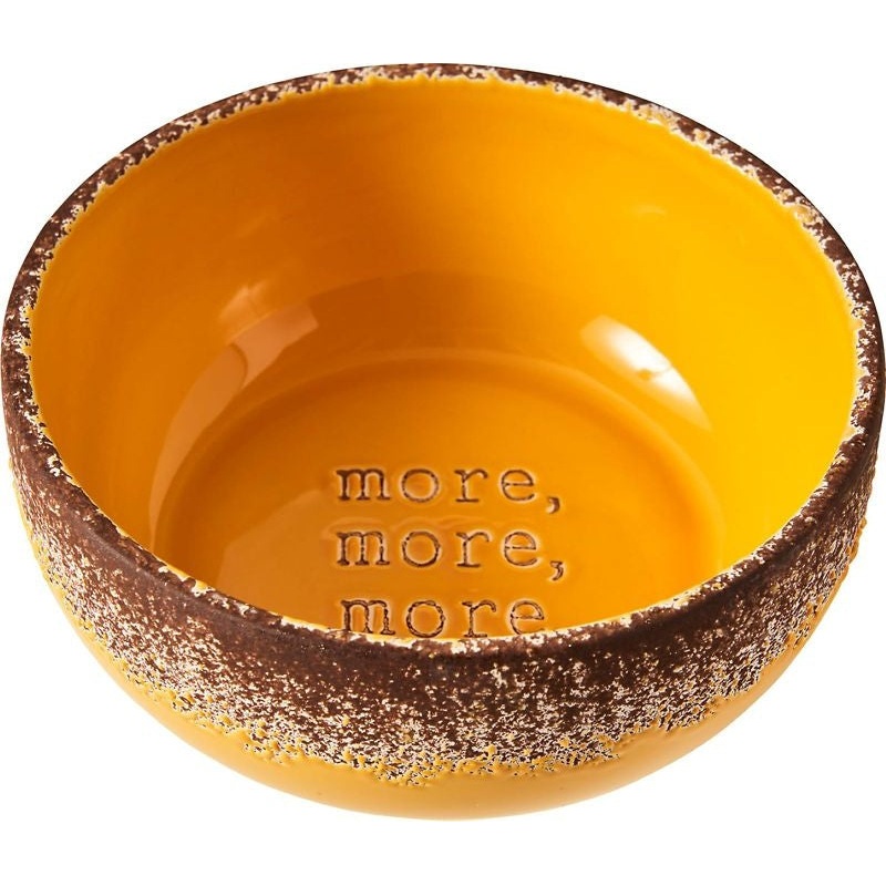- Trendy and stylish More More More mango dog dish is just what your pup needs for food and water