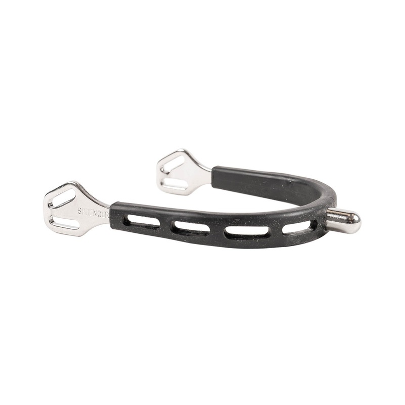 Superior design fits perfectly over riding boots, eliminating pressure points while offering stability for correct spur placement. Rubber covering over the stainless steel further secures the spur in place for enhanced performance and is less abrasive to boot leather.