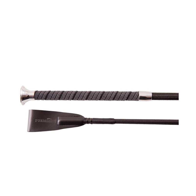 Polycarbonaat, nylon gevlochten, met antislip handgreep, voorzien van een verchroomde knop en een lederen flap.