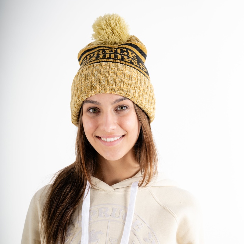 V2460621122Spruce Meadows Gold Pom Pom Beanie