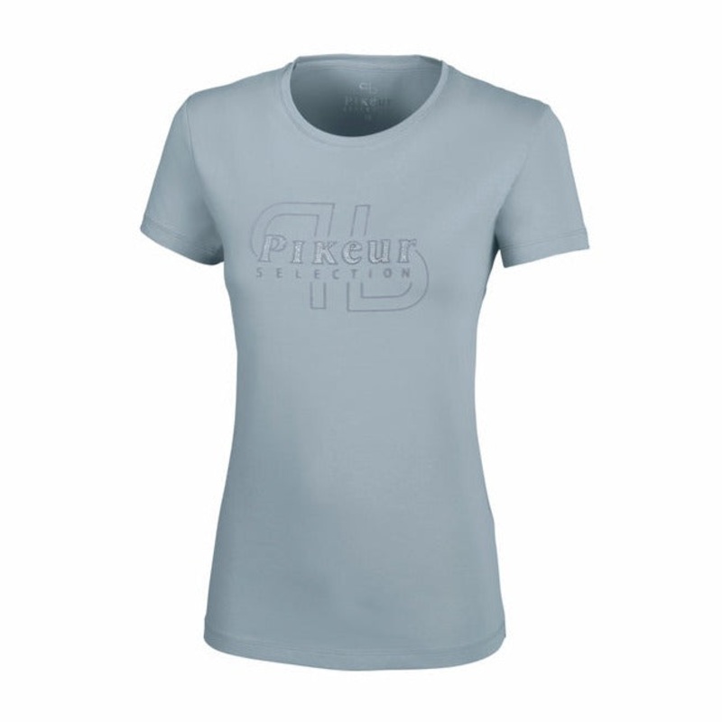 Cotton shirt with rhinestone flock labelling. Stretchable material.