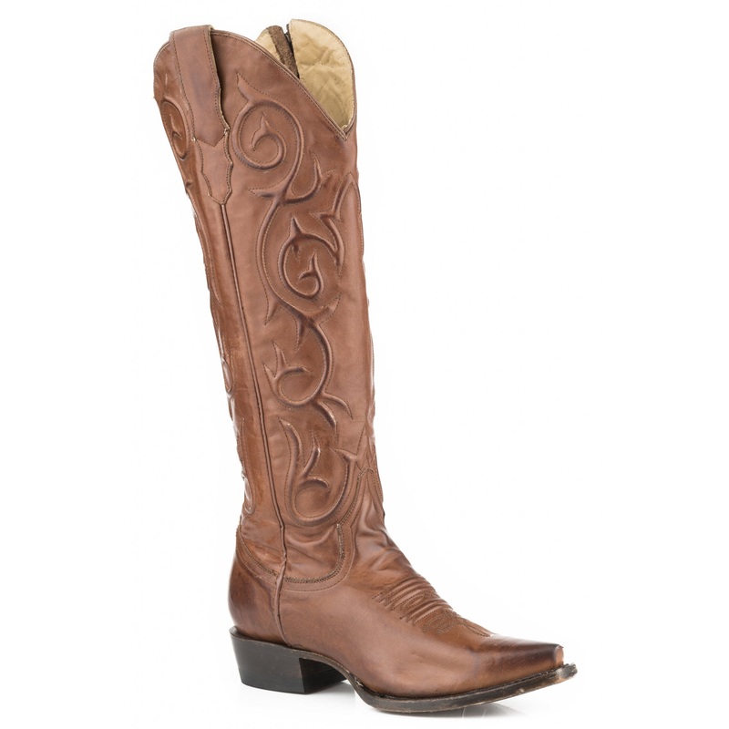 Brown Vamp And 18" Shaft With Corded Design * YKK Side Zipper * Snip Toe * Single Welt * All Leather Sole * Stacked Heel * Lemonwood Peg and Brass Nail Construction * All Leather Lining * Cushioned Leather Insole * Leather Pulls