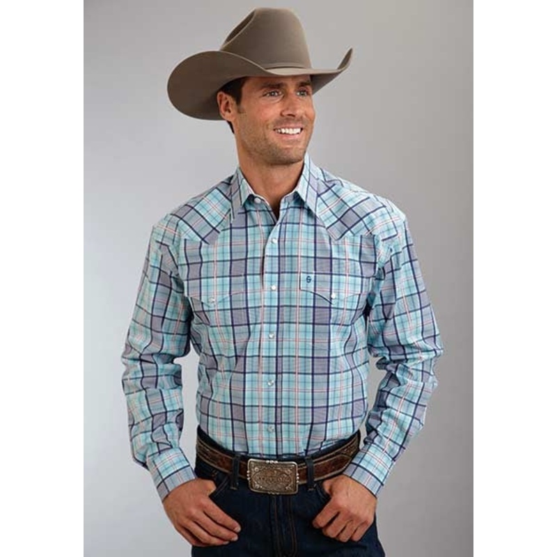 Stetson Y/D Plaid W/Satin Stitch Weave * 1 Pt Ultra Deep Curved Bk Yoke * Stetson "S" Emb * "Stetson" Emb On Right Sleeve Placket * Solid White Inside Trim * 3 Snap Cuff * Classic Snap Front Featuring Logo Snaps *Color:BlueSize:Medium