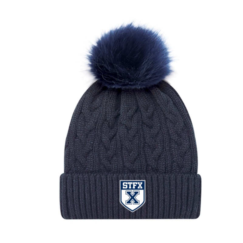 Stay warm in style with this stunning faux fur pom toque.Features:Made from AcrylicStylish jacquard cable knit cuffComes with a 12cm pom pomOne size fits most adultsavailable in navy