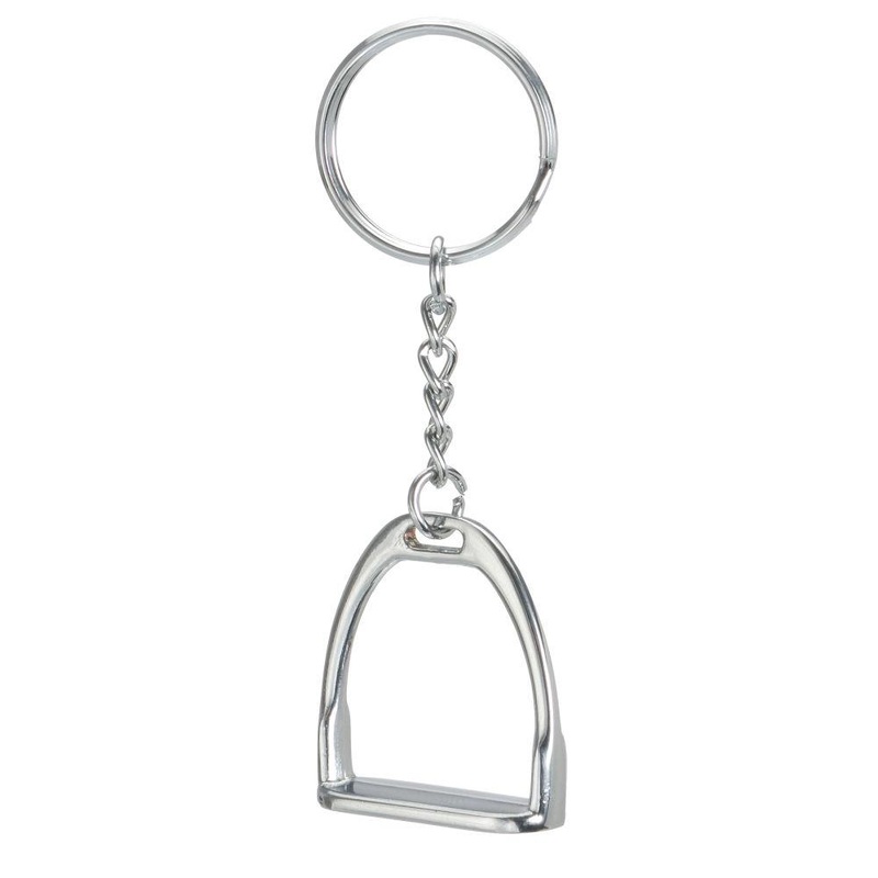Chrome plated stirrup iron keychain.