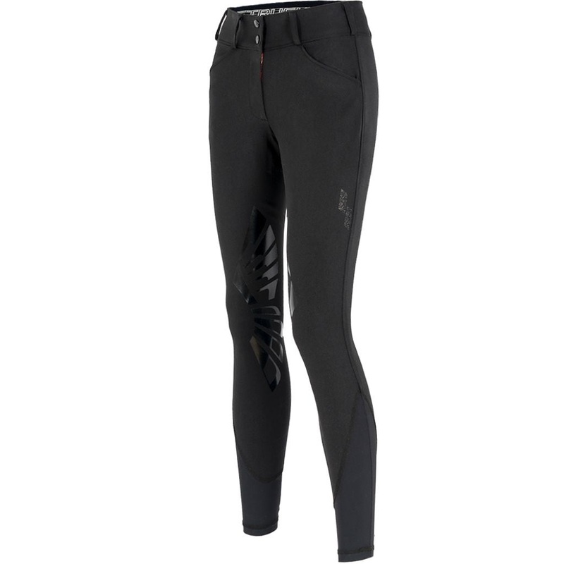 In Schoeller Prestige fabric offers incredible stretch, shape retention, and breathability. Made to resist fading and stains.The flattering low-midrise with custom waistband is super figure flattering, designed to keep shirts tucked-in and eliminate gapping. Our soft stretchable lower leg cuff creates a smooth and comfortable fit under your boots.Finished with our signature red sport-lock zipper, and grip knee patch system.