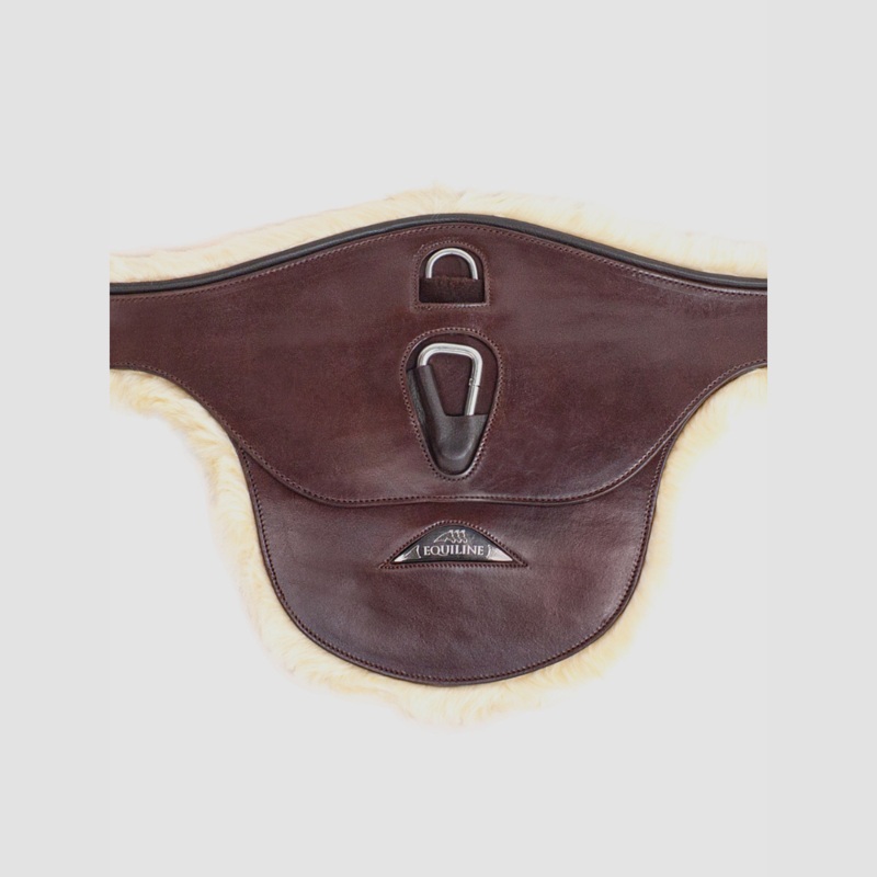 Anatomic leather stud guard girth with removable sheepskin lining. Buckle and strap for martingale or breastplate. Side rings. Steel buckles with elastic.
