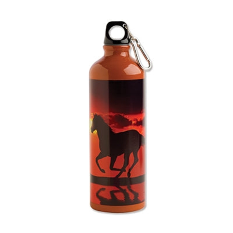 The Sunset On The Beach Aluminum Sports Bottle is a 26 oz sports bottle with a carabiner.