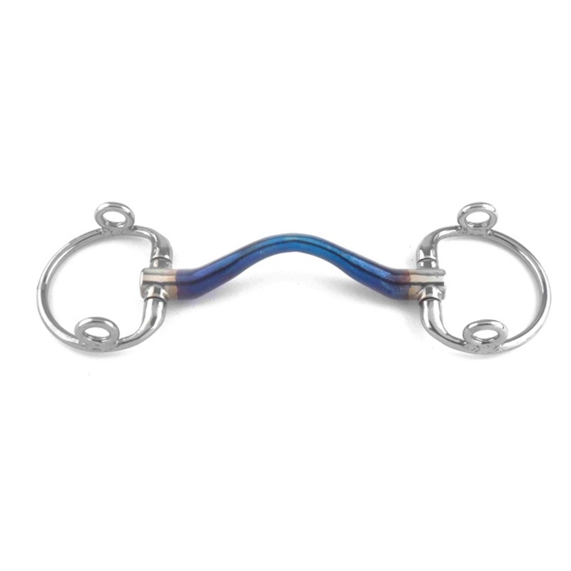 The sweet iron bits are made of steel and have a recognizable blue color. Due to contact with (air)moisture, Sweet Iron creates a rustfilm on the surface which has a sweet taste. As a result, the bit naturally encourages saliva production, which leads to more chewing activity and more foam will be built up and thus an overall better acceptance of the bit.