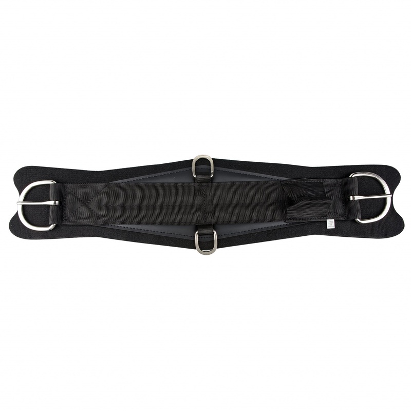 Shock foam roper girth 6 1/2" wide with nylon backing and saddle felt bottom sandwich over a shock foam center. Billet tuck loops, and chromed steel buckles.