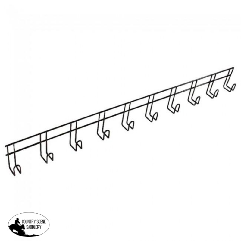 Tack Rack 10 Hook Keep your tack room organised with this Ten Hook Tack Rack with plenty of room for halters, lead ropes etc. Overall length: 116cm. Overall height: 15cm.