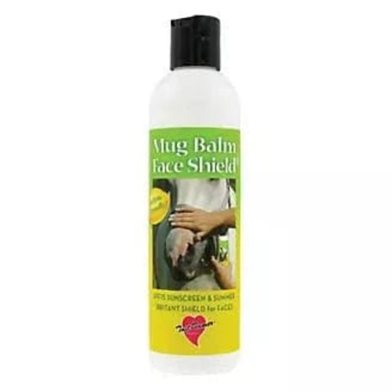 Tail Tamer Mug Balm Face Shield is a natural lotion that provides a barrier to summer irritants as well as blocking the harmful rays of the sun. Protect those pink noses! Shields up to 70% of uv rays. 8oz