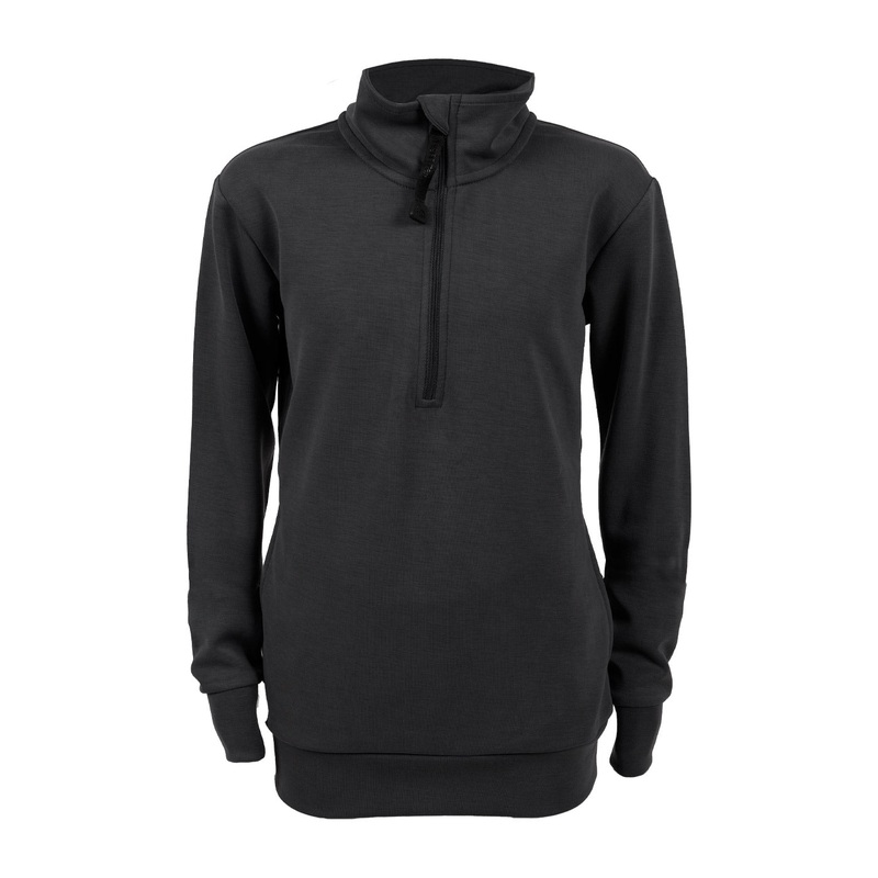 The TemTeq Equestrian Avery Quarter Zip Sweatshirt offers a technical and comfortable layering piece. Features an elasticized ribbed hem and cuffs to trap warmth with a 1/4 zip stand neckline for easy on and off. Complete with 4-way stretch for all day comfort.