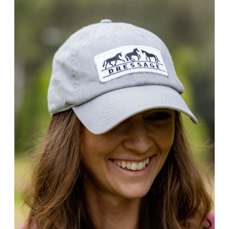 Show off your sport with style! The Dressage logo design graces this classic barn hat – perfect for covering up helmet hair.