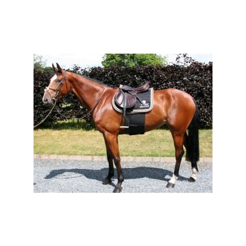 Its main functions are: To protect the horses sides from wounds/rubs, or in the case where they are already present, it allows the horse to be worked without further injury.