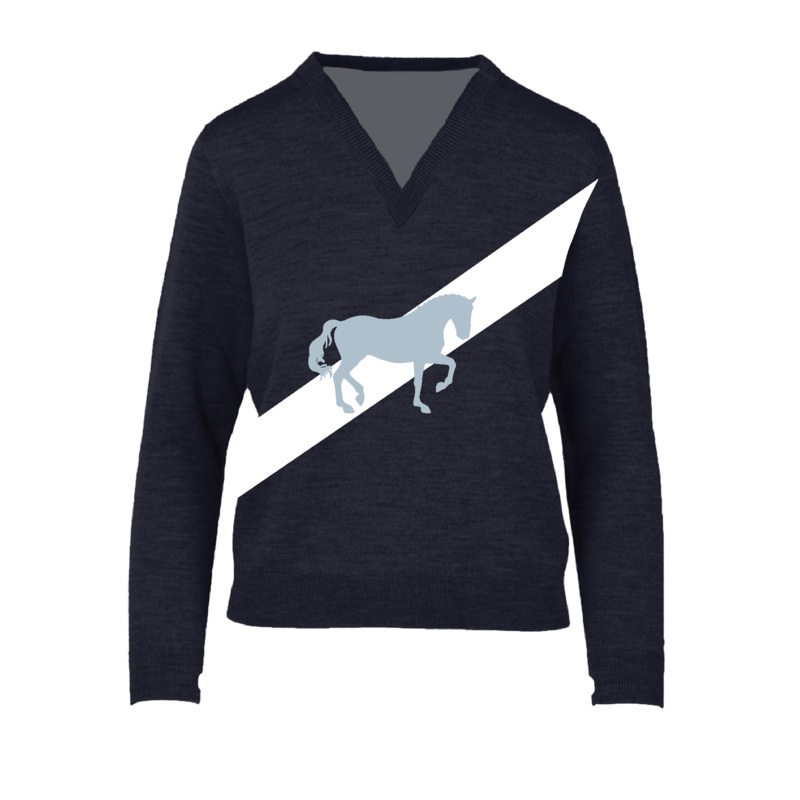 Introducing a custom Vanner House design, The Dressage Sweater is where luxury meets equestrian charm. Crafted from soft, breathable Merino wool, this sweater features a flattering V-neckline with a stunning pony at the centera true nod to the rider's spir