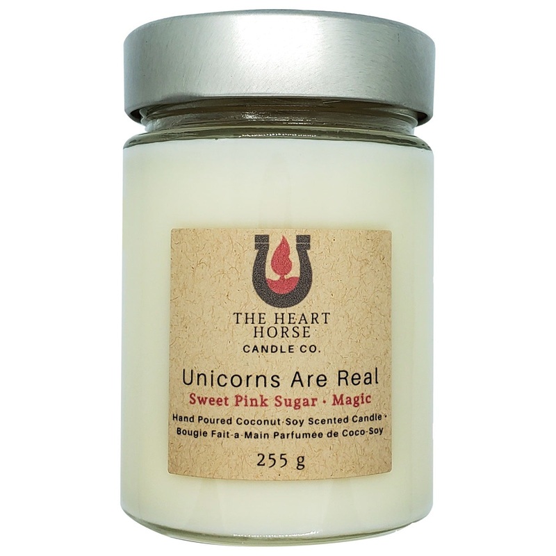 The Heart Horse Candle Co. “Unicorns Are Real” candle features the magical scent of sweet pink sugar, with notes of strawberry, lemon, sugar, and a small hint of perfume. Hand crafted in small batches using coconut-soy wax and high quality fragrance oils. Free of paraffin, phthalates, and dyes with 100% cotton wicks that burn up to 40 hours. Perfect as personal dcor or as a gift!