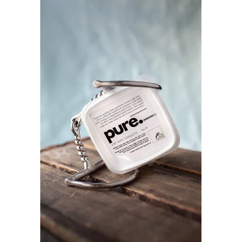 pure. A Bit Wipe Towelette -Ditch the harsh chemicals and choose a healthy alternative for your horse. Our proprietary blend cleans your bits with natural agents and zero toxins. Made with 100% pure therapeutic, grade-Aessential oils. Your horse will love the taste of purity! Simply wipe the bit cleanand let it air dry. Finally, something worthy of your horse’s mouth. Qty: 30 per container.