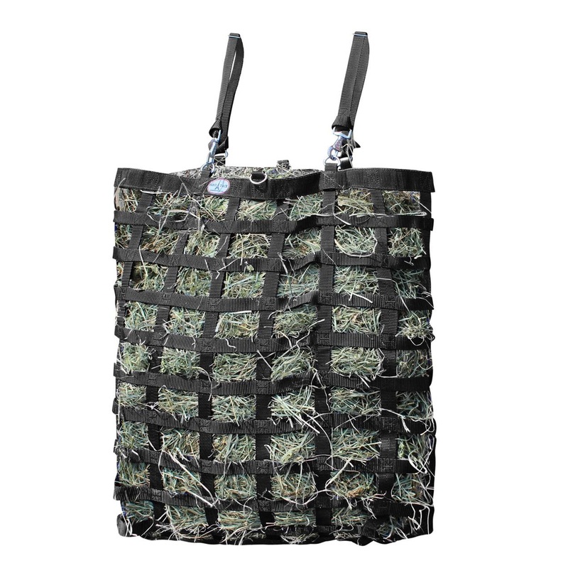 - SUPER TOUGH BOTTOM DESIGN – our exclusive Super Tough Bottom is made of reinforced overlapping nylon webbing. This design allows for superior strength and durability while keeping your hay fresh and allowing dust and debris to exit the bag.