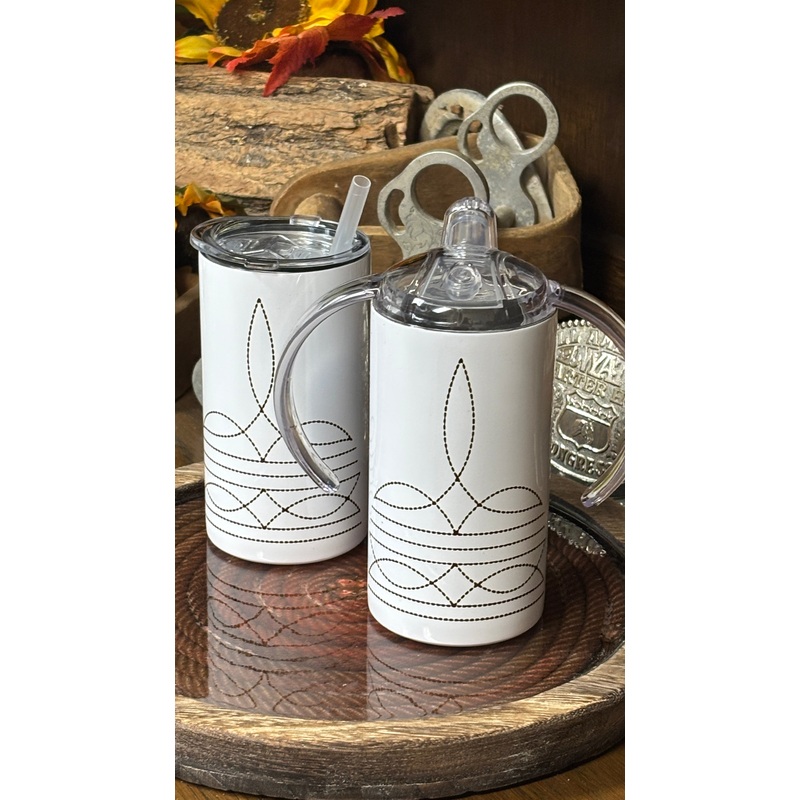 Get your cow babes ready for cowy adventures with this stylish Boot Stitch infant/toddler sippy cup! Made with high-quality materials and a western boot stitch design, your little cowpoke will be the star of the ranch. Built to withstand all the fun and roughhousing, this spill-proof sippy cup will keep your cowkids cool and hydrated in the summer, and warm in the winter. A must have for your lil cow babes!