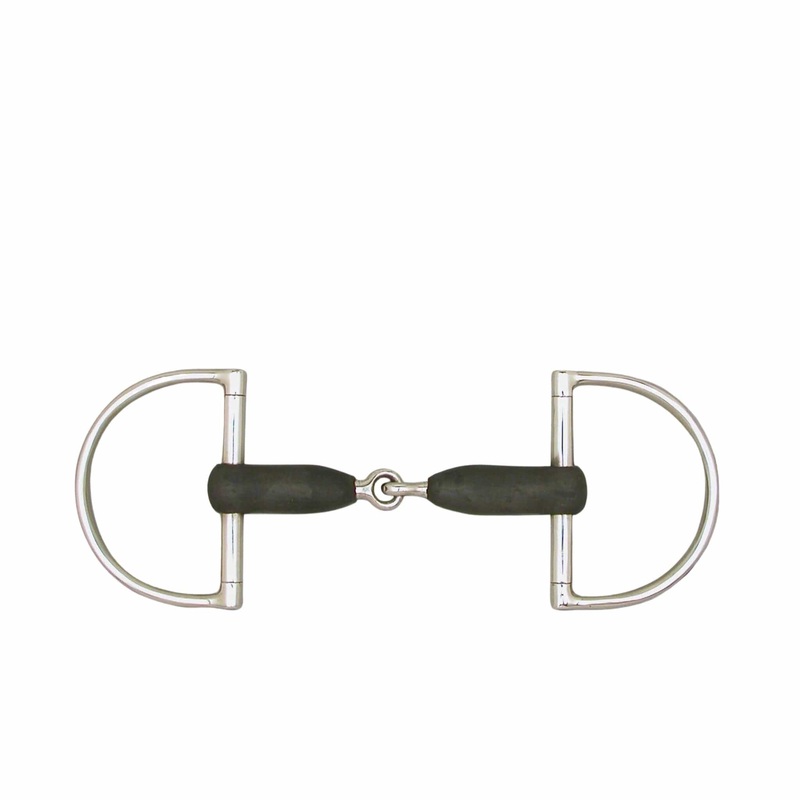The Toklat Hunt Dee Ring with Rubber Mouth bit is a mild single jointed snaffle. The “D” shaped rings help with lateral control of the head and the rubber increases the diameter of the mouthpiece and softens its severity. The rubber snaffle effect would be a little stronger than a similar Eggbutt bit.
