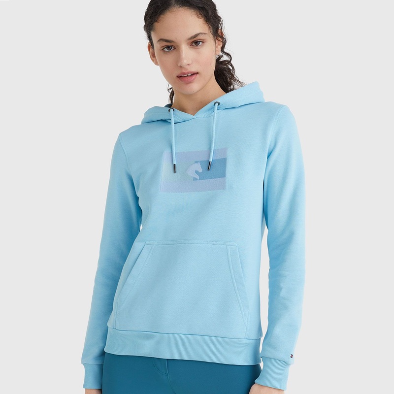Add a fresh pop of colour to your new season equestrian wardrobe with the Tommy Hilfiger Embroidered Logo Hoody in Summit Blue.