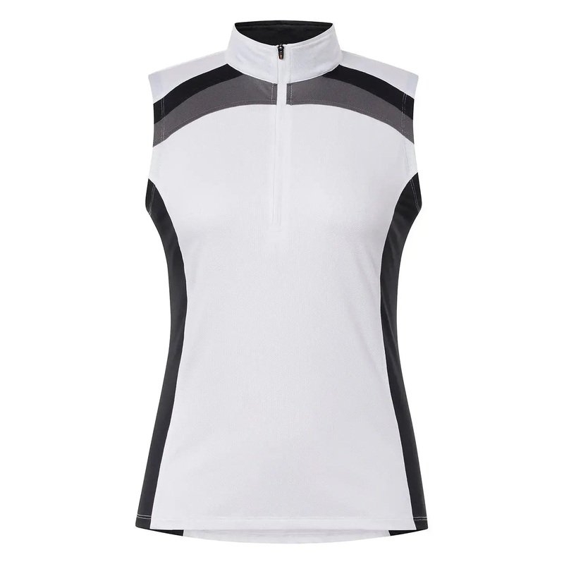 A sleeveless, sporty, quarter-zip riding top. Riders can stay cool and comfortable in the saddle, thanks to the 360 moisture movement technology of Coolcore. Cooling power is naturally engineered directly into recycled fibers, ensuring moisture-wicking performance that will never wash out.