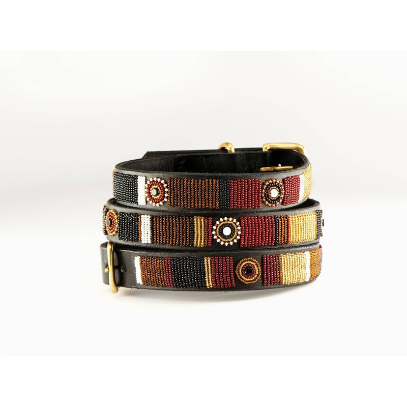 Each creation is meticulously handcrafted by skilled Maasai Mamas using premium, durable leather, with hand-cast buckles and clasps. Crafting one collar takes a Maasai Mama about a day, while a belt requires two days of dedicated beading. The beads are carefully hand-sewn onto the first layer of leather, followed by the addition of high-quality hardware and a second leather layer, which is glued and stitched for added softness and durability.