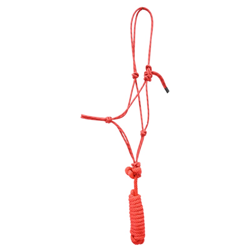 Tough-1 Poly Rope Tied Halter with 10' Lead- RedTough 1Poly nylon ropeMedium-stiff with limited stretchShrink wrapped ends to prevent frayingIncludes 10ft lead ropePopular for increasing horse responsivenessRed rope halterLooking for a durable rope halter