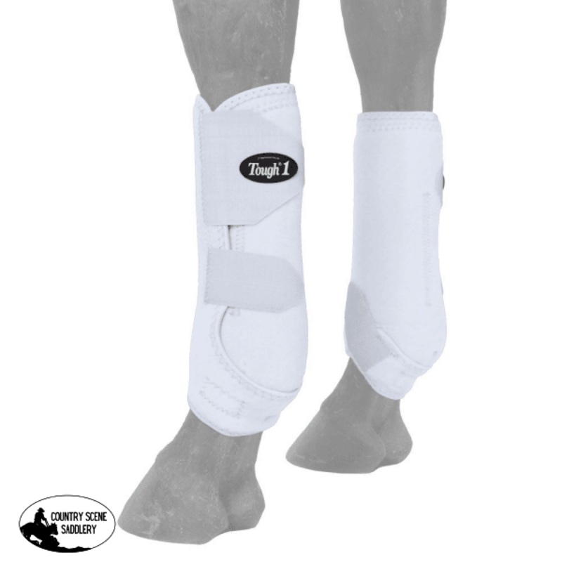 Tough1 Extreme Vented Sport Boots provide 360 degrees of maximum protection. These boots feature a suspensory sling strap that provides flexible fetlock and tendon support without restricting movement or inhibiting performance. The vented (perforated) inner and outer layers allow heat to escape while keeping dirt and debris out. They’re made complete with super tough “Quick Grip” closures for a secure fit every ride. Front pair of 2.