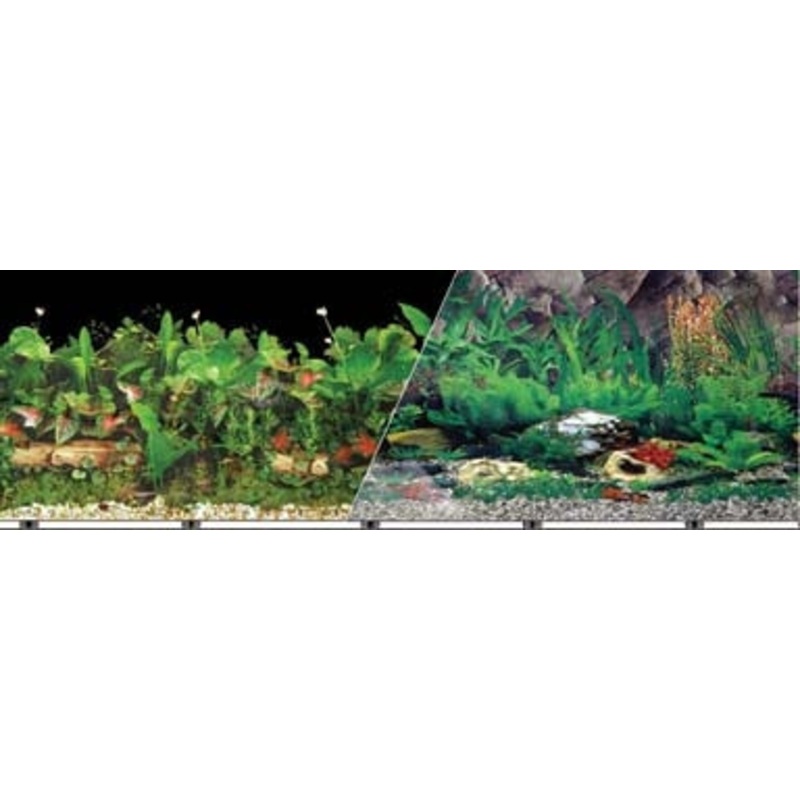 Double sided scenic background for aquariums or terrariums. Cut to desired length and fasten to back of tank.