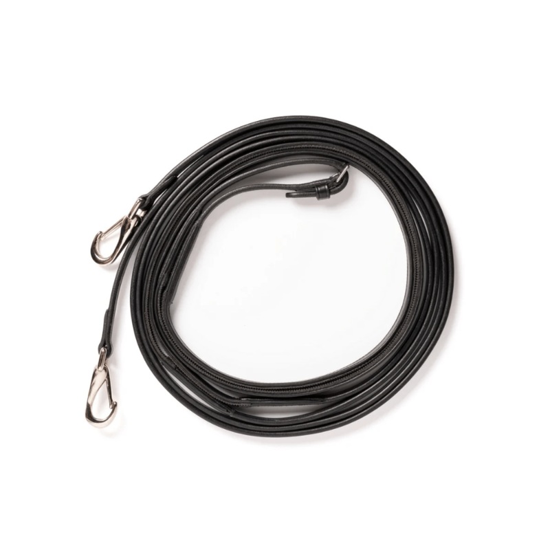 The Trust Loop Draw Reins Monaco are designed to encourage a consistent head carriage and promote self-awareness in the horse. Crafted from a combination of durable cord, supple leather and rubber for extra grip, these draw reins allow for smooth movement through the bit rings. They feature convenient clips for quick fastening and an attachment eye for securing to a lunging girth or saddle girth.
