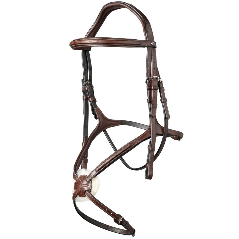 The TRUST Oslo features a figure 8 sheepskin noseband offering alternative pressure distribution. The headpiece is anatomically shaped and cut back to allow more freedom at the ears. The padding is soft but not too thick so that direct contact with the horse is maintained. TRUST Oslo has beautiful decorative stitching on the browband and the noseband.
