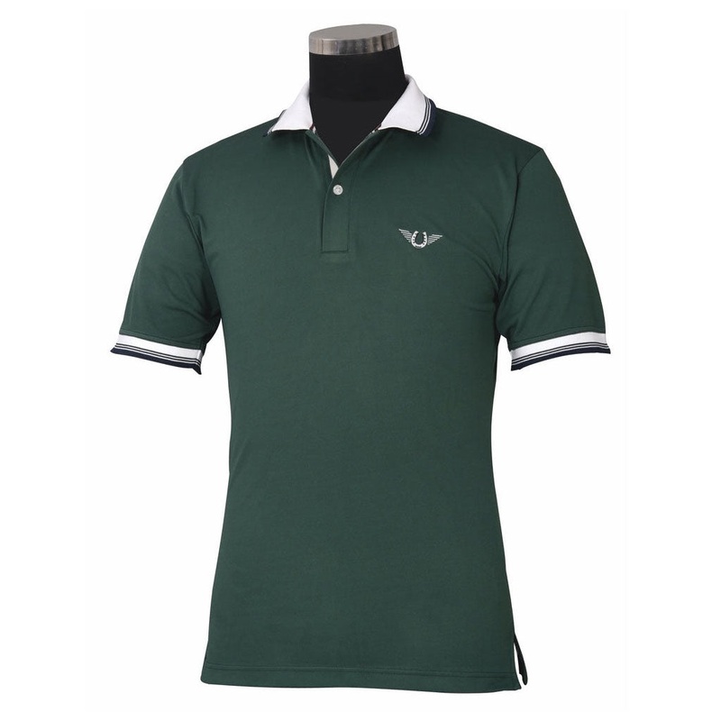 The TuffRider Men’s Mark Short Sleeve Polo Sport Shirt has a classic fit in a breathable, lightweight, EquiCool fabric that pulls moisture away from the body and protects from harmful UV rays. Contrast trim along the collar and sleeves gives this polo a professional look for everyday riding. Great for riders, trainers, dads, and brothers!