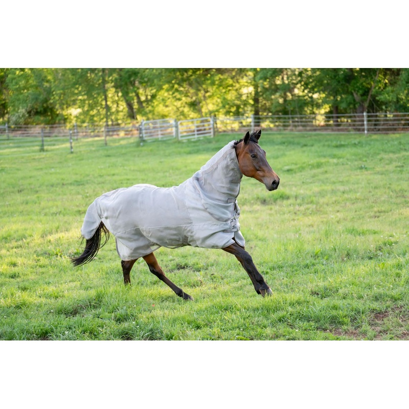 The TuffRider NevaTear Technical Combo Neck Fly Sheet is the ultimate solution for keeping your horse protected from pesky flies and other insects. This sheet features Two Front Closures and Low Cross Surcingles for a secure fit, as well as a Shoulder lining and Large Tail Flap for added comfort. Made with wear-resistant, self-healing, and breathable material, this fly sheet is perfect for any outdoor adventure with your horse. Say goodbye to rips and tears – this sheet automatically repairs itself, giving you peace of mind while your horse stays comfortable and protected.
