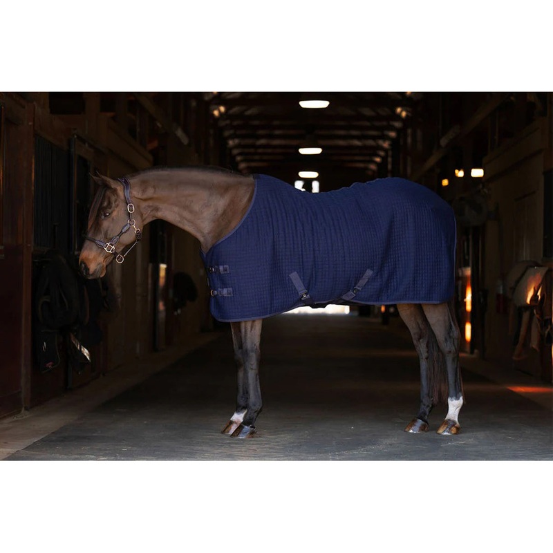 ThermoManager Stable Blankets combine warmth and comfort from cool to cold days. This special “sandwich” fabric is made with polyester / cotton / viscose on top and bottom with a polyester fill in between for exceptional excellent thermal insulation. The unique property of this fabric is warmth with breathability and keeping the coat dry. Adjustable front closures for a customized fit and cross surcingles for keeping the blanket securely in place. Machine washable for easy maintenance.