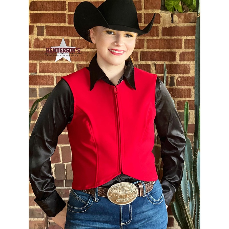 We finally did it!! A cropped vest that highlights your buckle. You worked hard for it…now show it off!I love this. Its our high v neck neck vest cropped at the chap line. This DIY is made in our ultimate stretch material. It will withstand whatever you can image. Add a row of fringe at the bottom for the ultimate bolero look. YKK zipper. Made in USAby Cowgirl Junk.