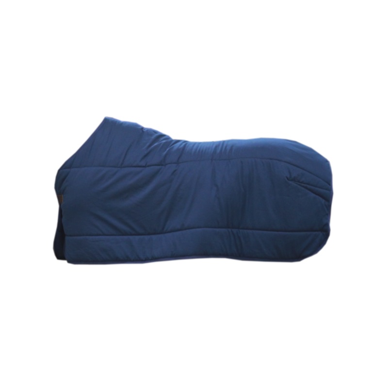 The fabric thats used for the classic rug is a polyester microfiber, which has a soft cotton touch. The microfiber has the same touch as a peach and is therefore very soft but yet stays in place under other rugs without rubbing. The fiberfill filling is a good isolation layer as it holds the body warmth and is yet breathable. This creates a cocoon of warmth around the horse, without having a damp feeling.
