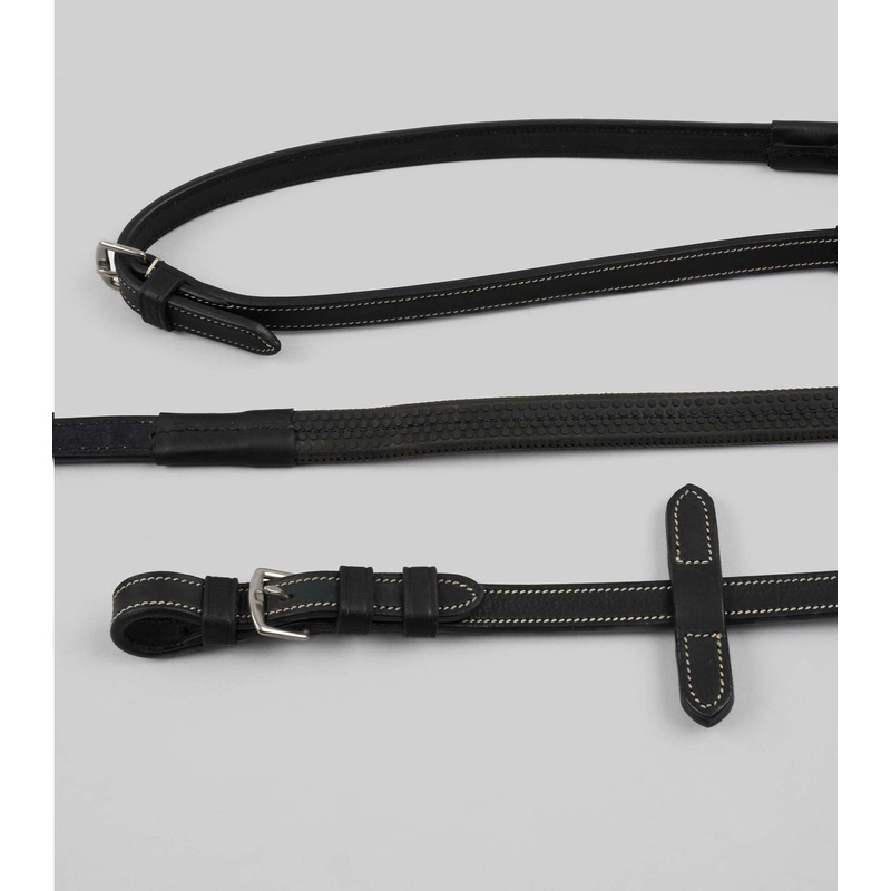 These black reins are designed with a rubber grip that provides excellent handling and a secure hold for the rider, adding an extra layer of comfort and control. Equipped with durable stainless steel buckles, these reins ensure a secure and reliable attachment to the bit. These high-quality finishes not only provides a sturdy and secure connection but also add to the refined design of the reins.