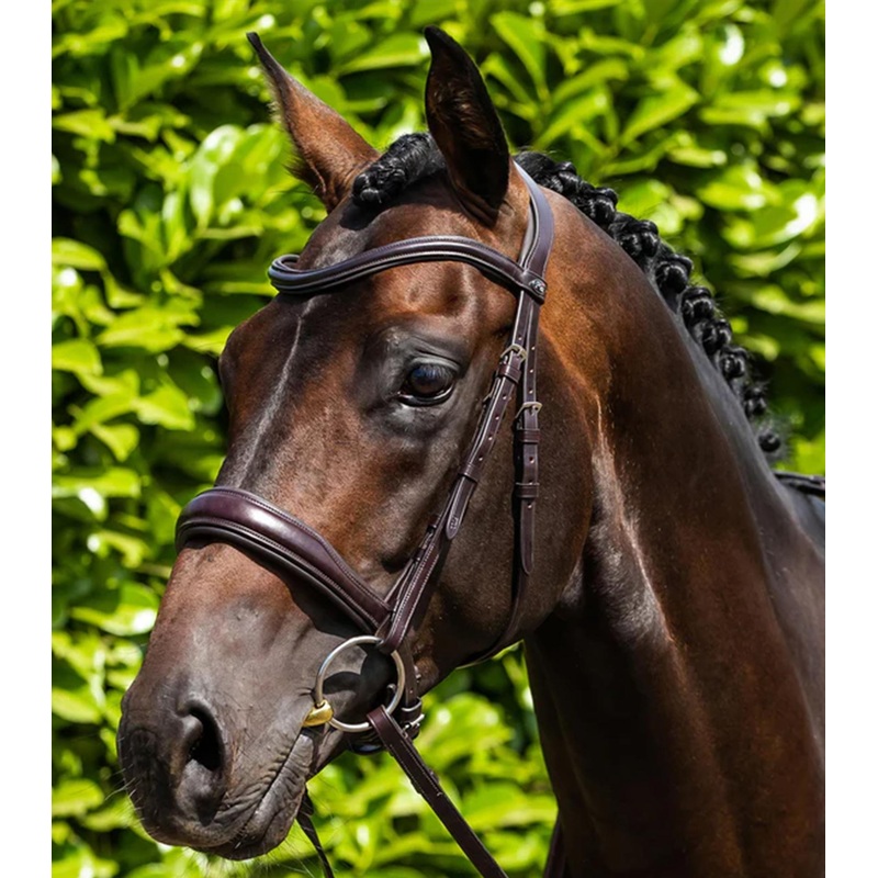 Constructed using high quality Italian leather this anatomic bridle has been carefully shaped to contour around the horses ears, nose and cheekbones in order to achieve a more comfortable and ergonomic fit. The anatomically shaped, padded poll piece is designed to distribute pressure over the less sensitive areas of the poll and away from the ears. The browband is also shaped to create definition and features a round raised design alongside soft padding.