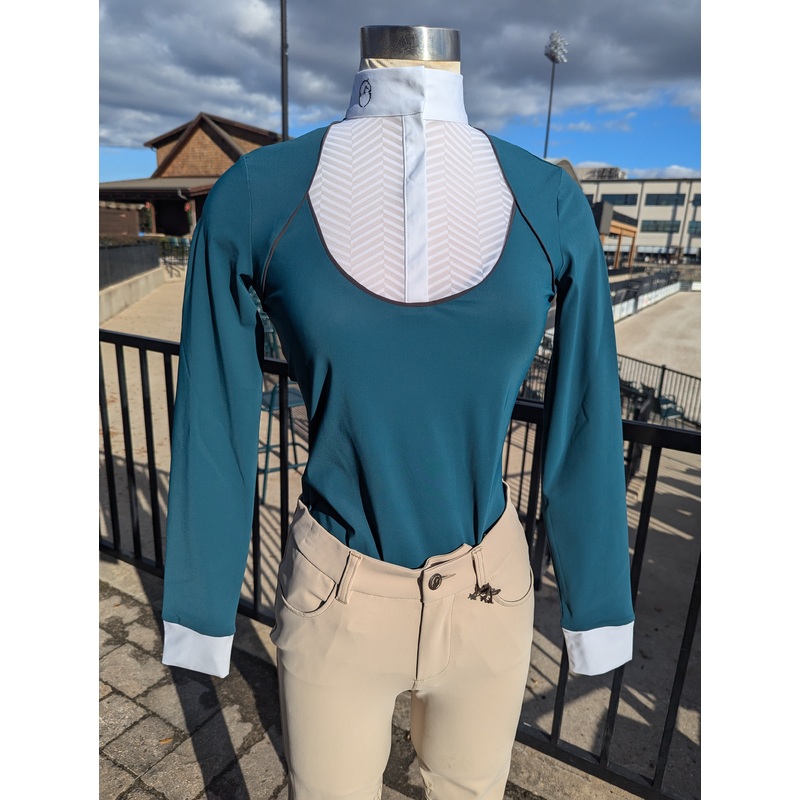 Malines is a womens competition shirt with high technical performance. The shirt is made of an extra fine, breathable bi-elastic fabric to ensure proper breathability. Long sleeve, poplin collar with embroidered logo. The shirt is embellished with bib made with asymmetrical cut.